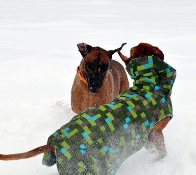 Meillä oli tänään hauska lumilenkki Leo-rhoden kanssa. Sääennuste lupasi mukavan lauhaa päivää ja aurinkoa, mutta lopulta keli oli noin -8 astetta, vähän viimaa eikä ainakaan yhtään aurinkoa. Yöllä oli satanut jonkun verran lunta ja se pöllysi koirien vetäessä rallia.